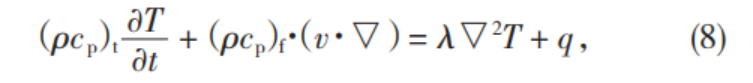 式(8)中,(ρcp)t為多孔介質(zhì)總的體積比熱容,J/m3;λ為多孔介質(zhì)的綜合導(dǎo)熱系數(shù),W(/m·K)。
